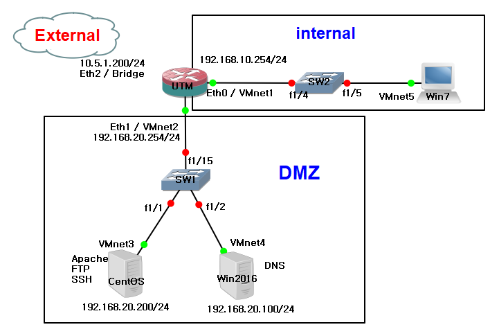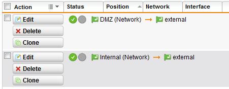 internal과 DMZ 영역을 external로 NAT연결을 해준다.