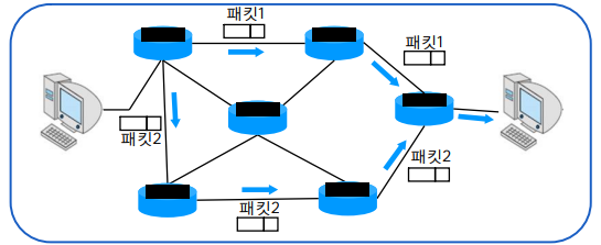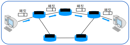 -각 노드에서 수신 후 잠시 저장하면서 적절한 선로를 찾아 송신함