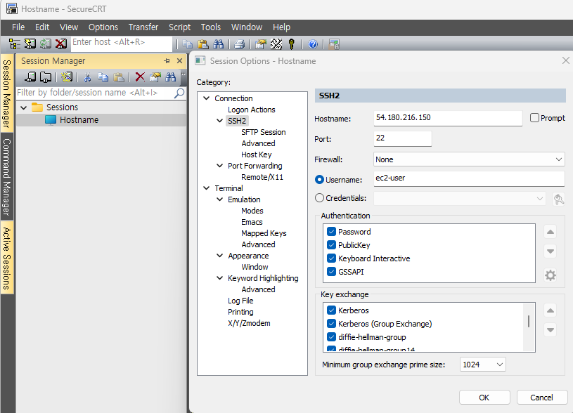 SecureCRT에 퍼블릭IP로 텔넷접속을 해준다.