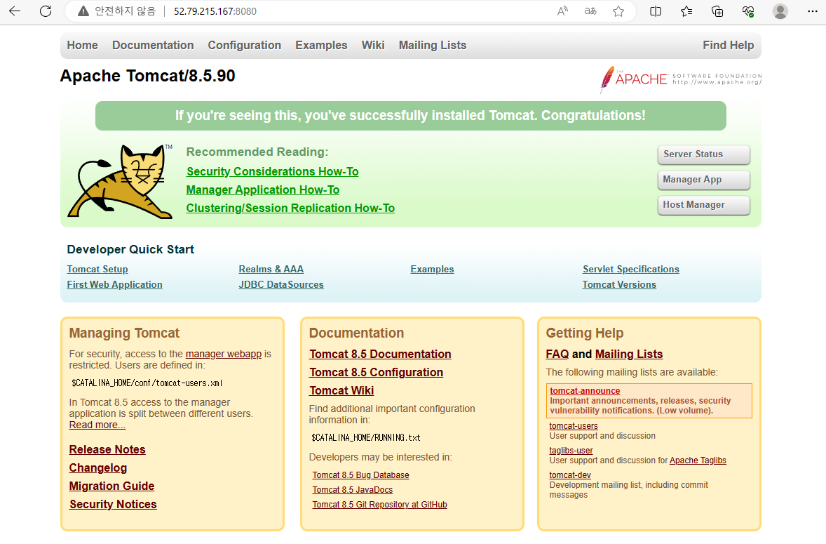정상적으로 실행되고 외부에서도 접근시