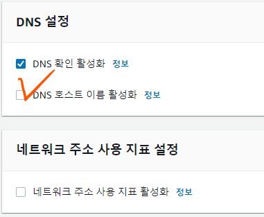 (엔드포인트가 영문주소로 오기때무에 DNS 호스트 이름을 활성화 해줘야 한다.)